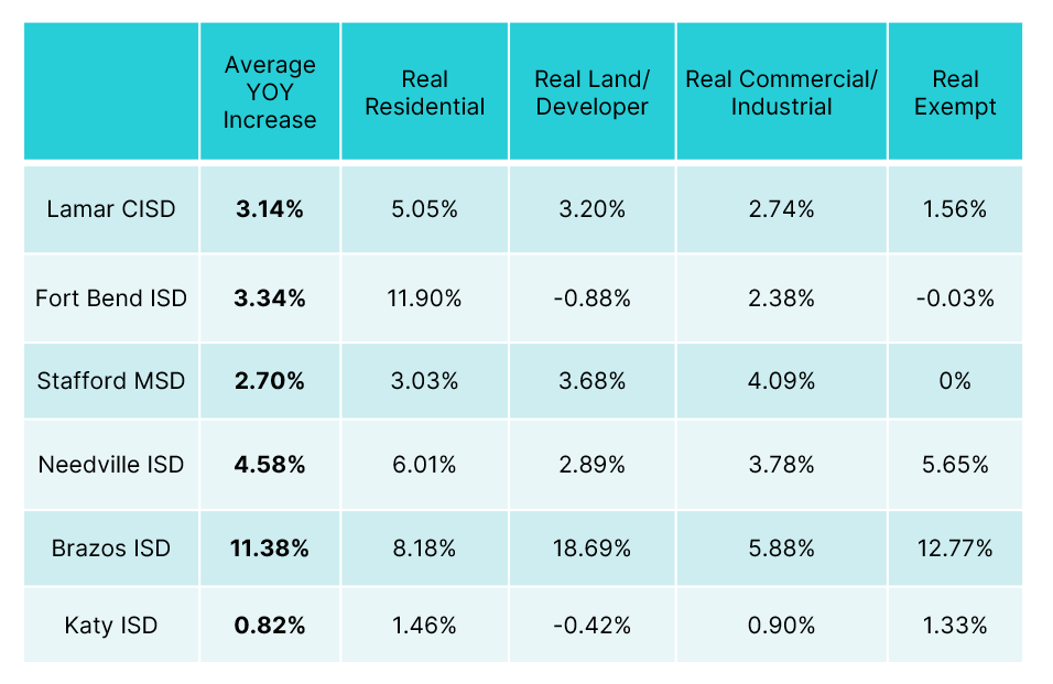 Year-over-year land across the county will see an average 7% increase with the biggest increases in the Brazos ISD area.