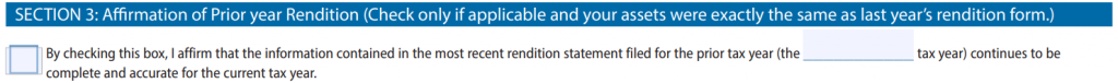 - At the very top, you will indicate the tax year for which the rendition applies.